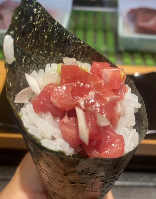 今日の追加は赤身・ヅケ・中トロ・鉄火巻・ネギトロ手巻・いくら・生ゲソ・うなぎ・うなきゅう手巻といったラインナップ。穴子もなし。