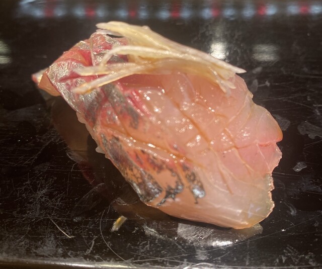 シャリはやや粘り気あり。白シャリ。あまり酸味、塩味・甘味なし。ただ、にぎり具合は流石で、空気含ませ、置いた瞬間沈み、口に含んだ瞬間寿司種と共にほぐれます。