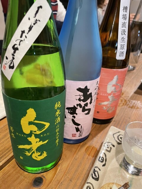 美味しい料理と共に、1枚目の写真にある5種類の白老(冷酒)と梅酒に1種類の燗酒を加えた計7種の日本酒を頂きました。同じ日本酒でも全て味や香りが異なることを知り感激しました。
