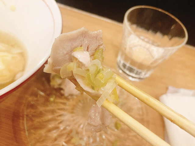 スープをひとくち…はぁ…もうどこの麺類よりも大好き。一応食べログ上はラーメン屋に入るのだが、史上最強の麺屋さんだと一口目で確信。そしてこれを自分の食べログ1000軒目にすること決定。