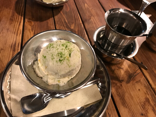 カウンターならではの会話も楽しく、カラピンチャ(=カレーリーフ)の粉を振りかけたジェラートも美味しく頂けまして何時もながらの良い時間を過ごした事でありました。