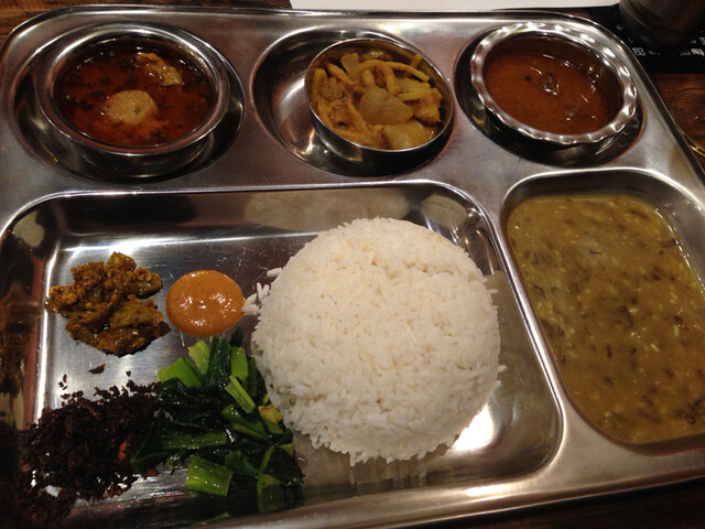 野菜も揚げ茄子と青菜、サンボルもボル(ココナッツ)とカッタ(赤唐辛子とドライフィッシュ」と2種類添えられておりまして実に多彩なワンプレートでございます♪