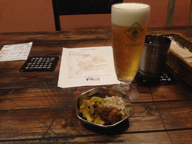 今日のスターターは、羊をマスタードオイルでマリネしたコシャ・カシルマンショでございます。ビールにぴったりでありまして、ハートランドは速攻で仕事終わりの親父の身体に吸い込まれて行ってしまいます♪