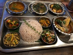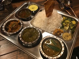 でも時々、そのお料理の方向が日本の食材を使ってのスパイス料理に向きまして、それで「Japanese Thali」なんて言う、「和のスパイス定食」を作り上げちゃったりするんです。