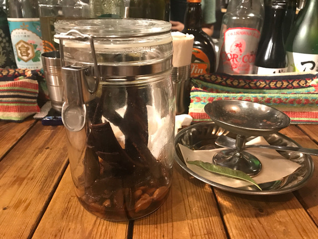 パコラでスタートする所が、バンガルっポイなぁと勝手に悦に入る親父でございます。 飲み物はお薦めの「山椒芋焼酎(AKANEYA)」のお湯割り♪ マッチングもばっちりでございます。