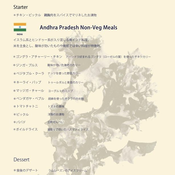 今回(ベンガル料理)は魚主体となるだろう事もありましてパスしようと思っていた肉食親父でありますが、キャンセルが出たと言うチャンスを逃す手はないと申し込みをしてしまいました。