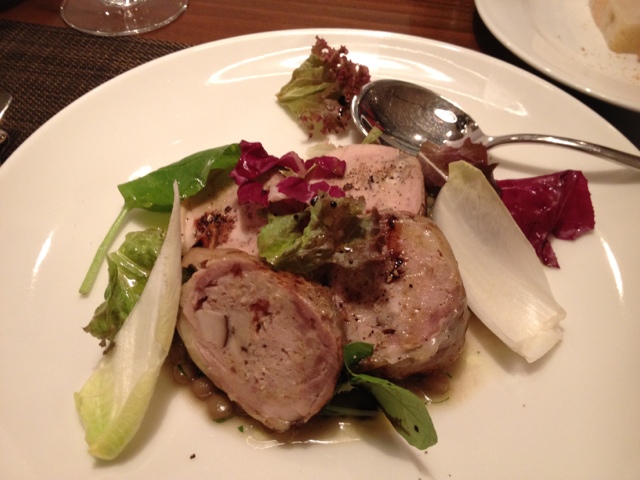 前菜に、「ホロホロ鷄のガランティーニ」「ランゴスティーニとエリンギのソテー、ひよこ豆のペースト添え」なんかを頂いておりますと、ワインも進みます♪
