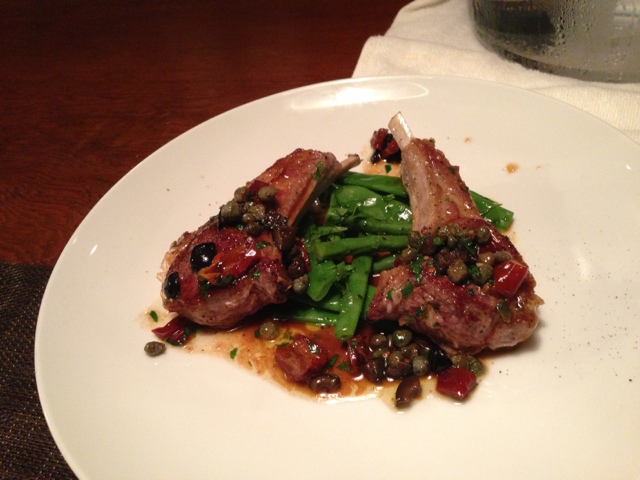 お肉は「子羊のカッチャトーラ」でありまして、ナイフで切り取れない部分は骨をがっしと掴んでガシガシと頂いてしまいました。