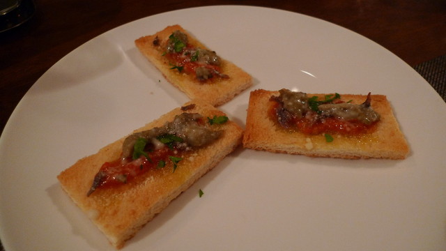 今日のお料理は、福間シェフが修行しつつ4年間も滞在しちゃった(^^)トスカーナ縛りでお願いしておりまして、スターターはレバーのブルスケッタを始めとする盛り合わせです♪