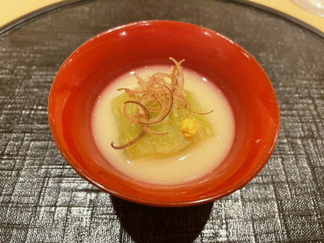 丹波大和芋、炊いた冬瓜とじゅんさい入り。