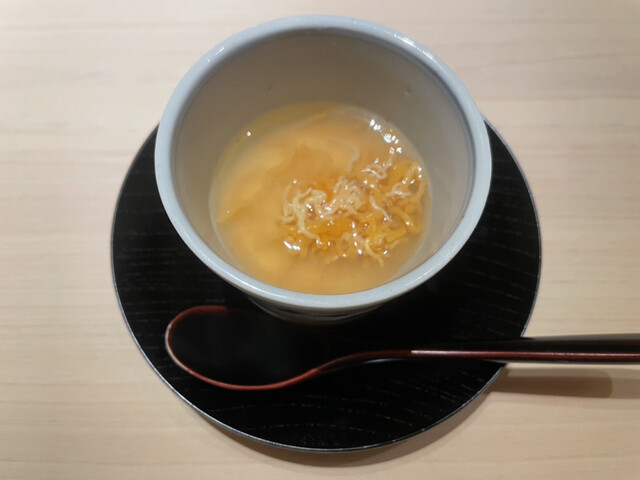 ばちこがのった茶碗蒸し。鮑と蛤の出汁で。