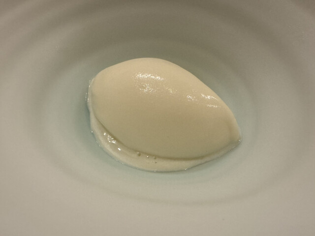 神経締めしたマナガツオは蒸して加熱。骨のパイタンとバターを合わせたスープ。マナガツオは皮付き。コラーゲンが凄い。マナガツオってこんな魚だったんだと改めて認識。ふっくらとして滑らか。クリアな旨みに感動。パイタンスープで動物性の旨みを。