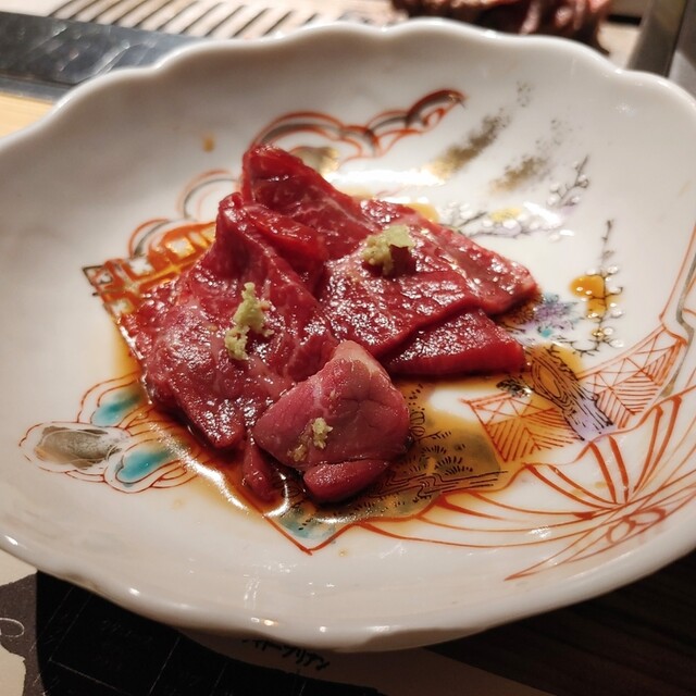 黒毛和牛タン・ハラミ/ 塊肉を表面焼いて小さくカット... タンにはレモンじゃなく湘南ゴールドを絞って。