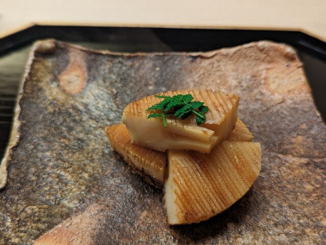細かく包丁目を入れ、炙った後さっと醤油を塗った筍は、香ばしさと甘味が際立ち、まさにほっぺたが落ちる美味しさ。