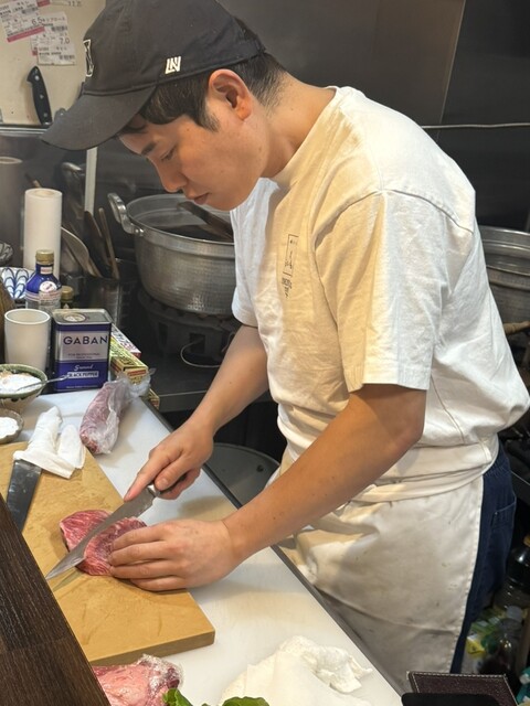 美味くて肉を食べるピッチが早いのですがそれに合わせて高橋さんが切り分けてくれます。