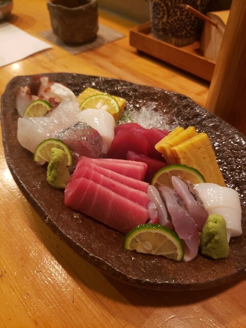 刺身の盛り合わせは相変わらず盛りだくさんで嬉しい。