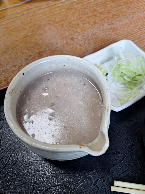 蕎麦湯、粉を追加で入れてるタイプ、濃厚でトロリとした感じが良い。