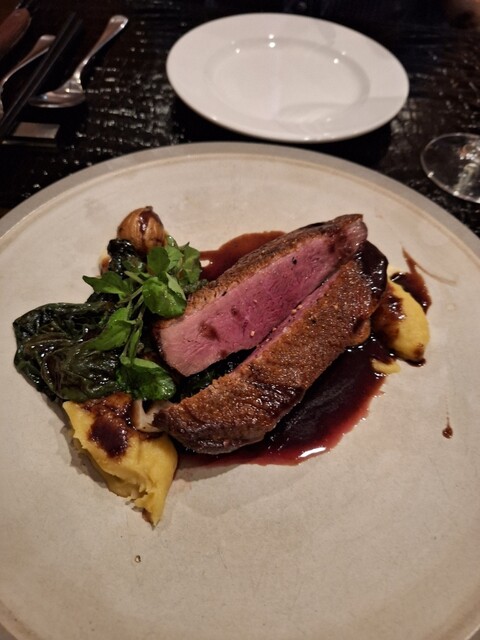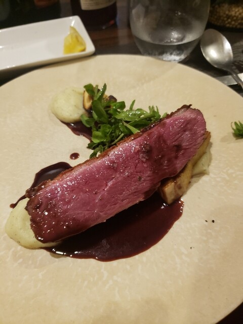 鴨肉の赤ワインソースは火入れが丁度良い肉と濃厚なソースが相性が良い。
