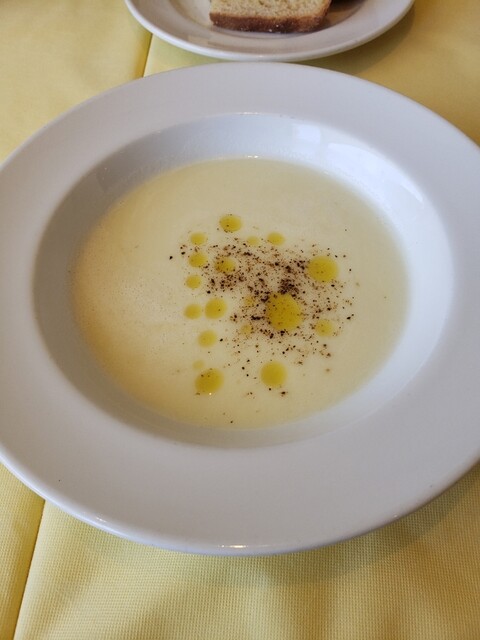 スープは具が豊富で優しい味、食事のはじめには丁度良い。