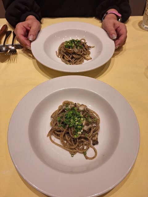 サザエのパスタは肝の味が先行してく感じで後で旨味に変わってくる、美味しい。