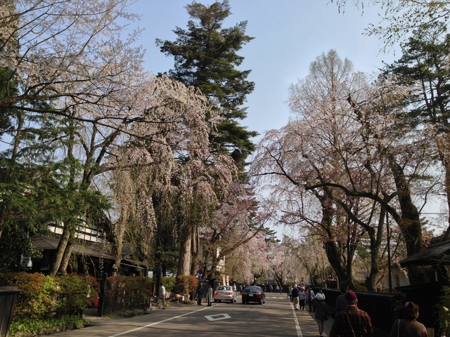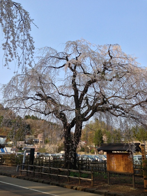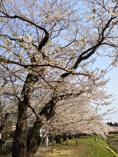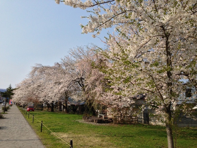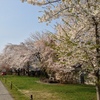 桜のトンネル 4/2 撮影 まだ両側に雪あり