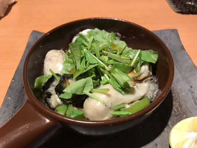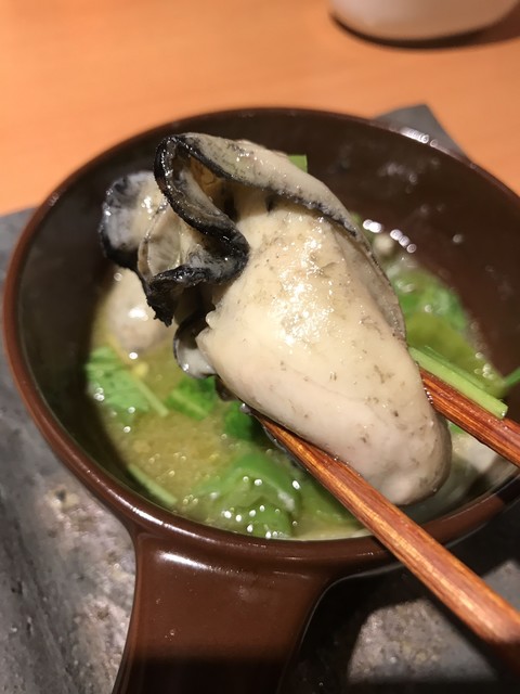 やや小ぶりだが旨味の濃い牡蠣は磯感控えめでとても上品。熱々で頂く。