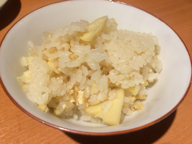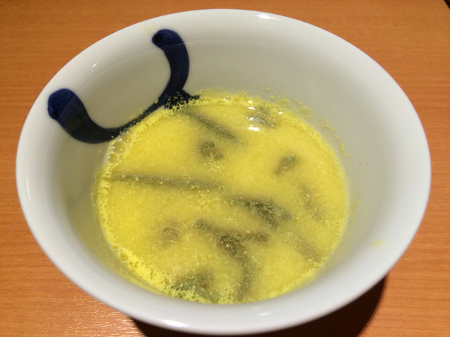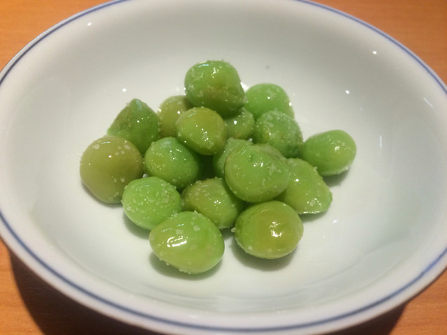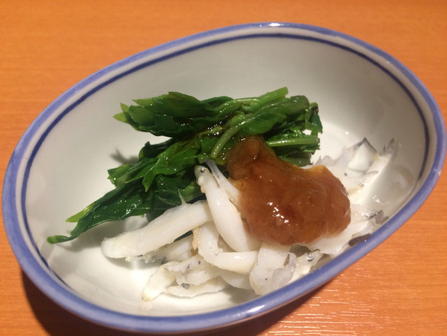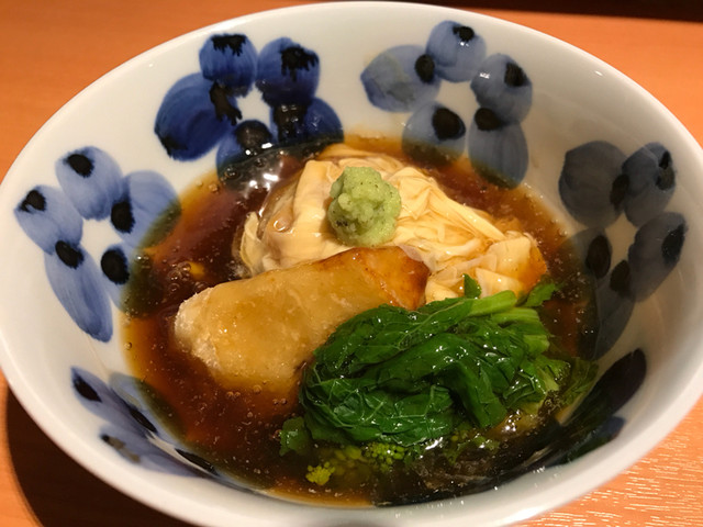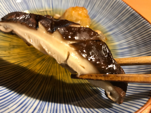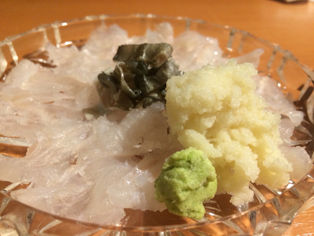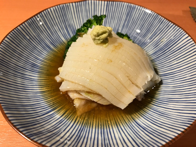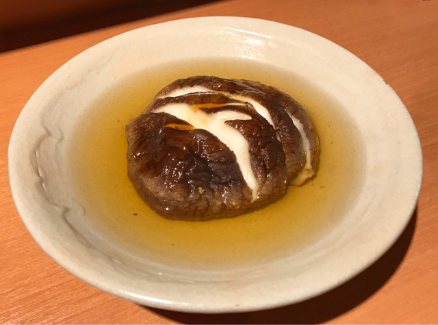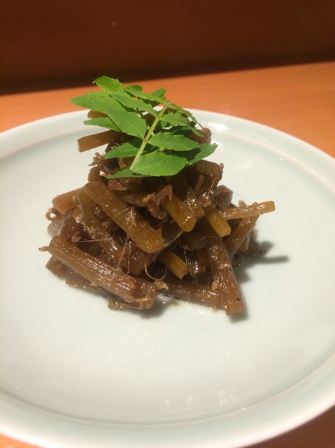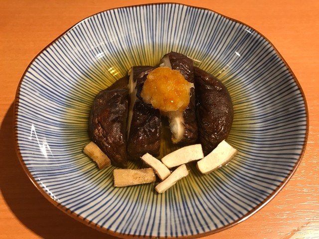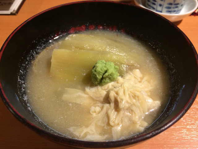 やや小ぶりで締まった鮑は適度な歯ごたえと上品な旨味。雑妙な煮方なのだろう。肝を溶いた芳醇な醤油につけて食べると…唸る。花山葵はカツーンと突き抜ける辛味。味覚のリセットに最適だ。