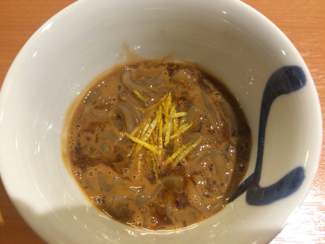 二日目の塩辛は臭みなく芳醇。柚子の香りが爽やか。