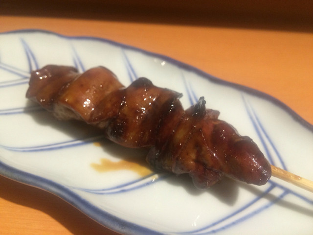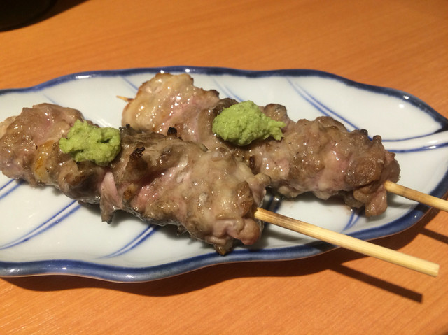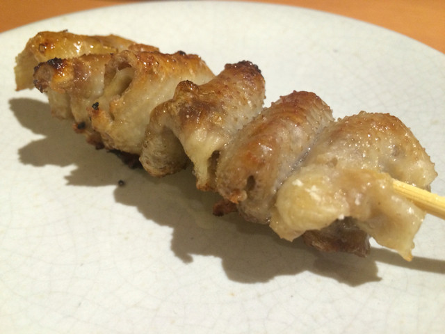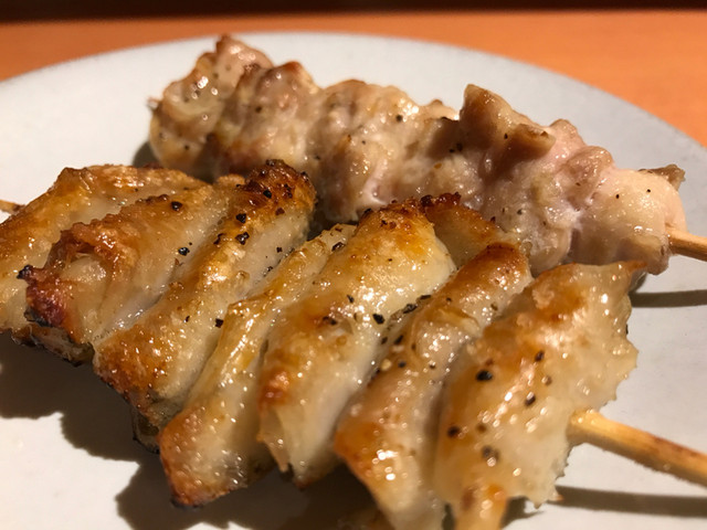 そうだった。ここのお店は「串焼」を冠した名前。流石の美味さなのだ。皮は鳥の首の皮。焼いている際に脂が落ちて痩せことを計算に入れて仕込んであるとか。確かに他のお店よりも大きくて肉厚感あり。