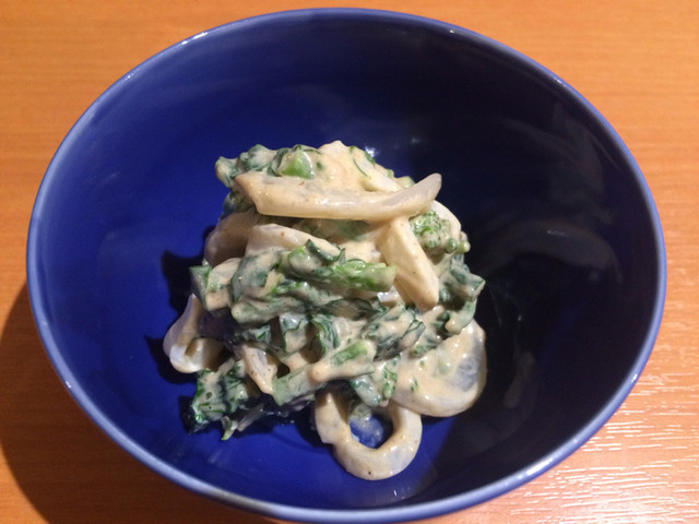今まで見た事のない新鮮な鰊だ。小骨の処理も丁寧にしてあるようだ。程よい酢の香りのおくから鰊の力強い味が沸きあがってくるような料理。