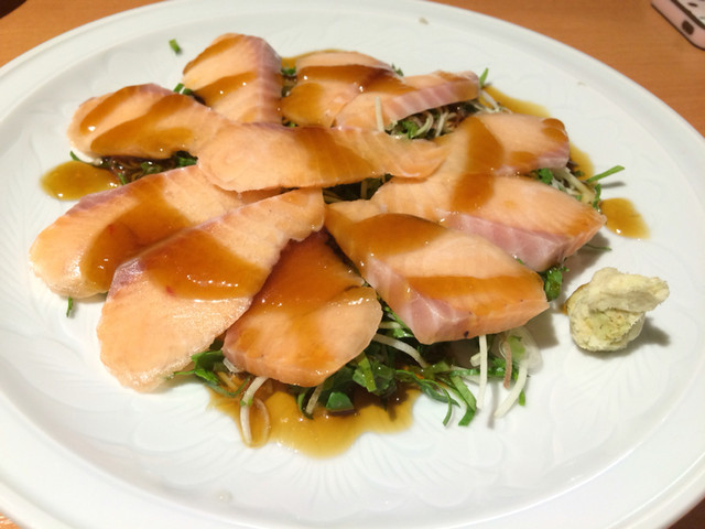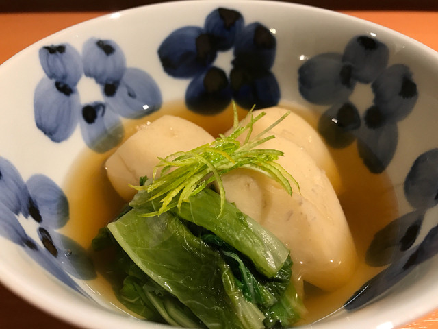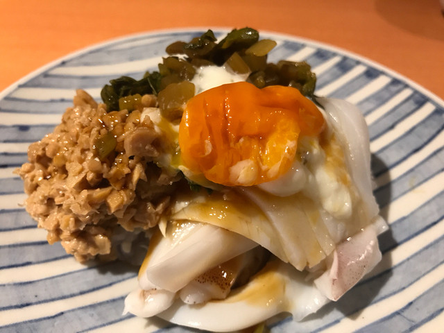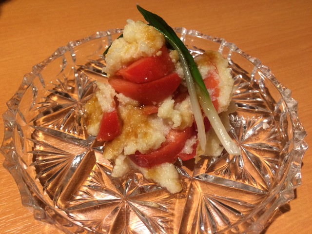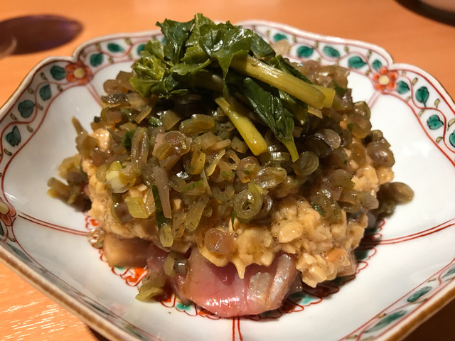 想像したことの無いコンビネーションだ。身近な材料をプロが調理するとこれだけ違うものかと。花山葵の醤油漬けが納豆と鮪を実に上手く取り持っている。