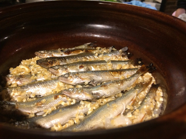 丸々太った大きな鰯。丁寧に処理して一夜干ししたとのこと。確か宮城産。脂の乗りが最高に良く、ほのかに熟成した身の味と絶妙なコンビネーションだ。香ばしくパリッとした薄い皮の中にはジューシーで奥の深い旨みが…。マイ絶品料理に登録だ。