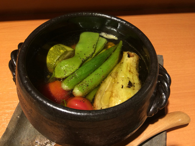 思えば今年の1月に初訪問して以来、毎週のように通ってきたが、毎回驚きと感動を与えてくれたお店。店主自らバイクを走らせ築地で仕入れる魚、地元の農家で地方買い付ける野菜。串焼きと書くが、立派な創作日本料理店だ。