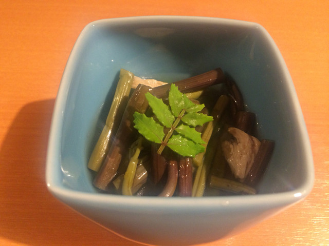 あさつきは茎のまま食べる感じ。苦味のない青みのある味。これが鰊と鰊のインターバルに最適だった。