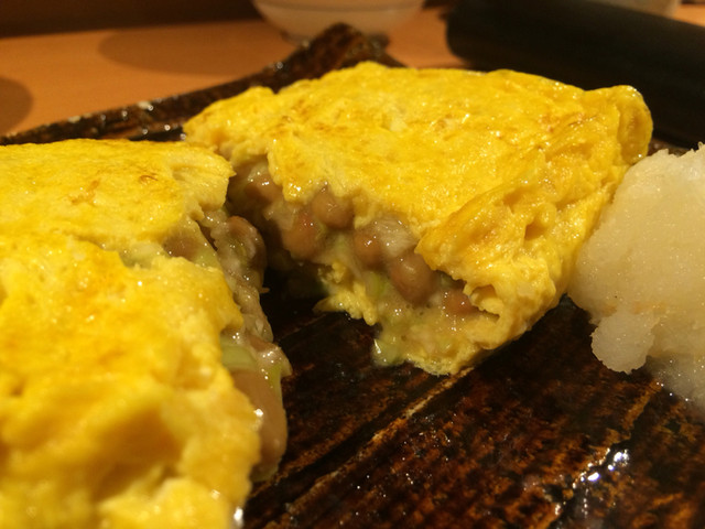 香ばしく炙られた揚げの中に大粒の納豆。和製パニーニのように食す。