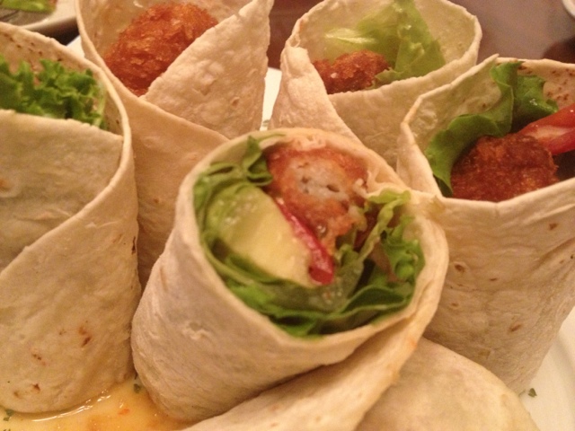 牡蠣フライとアボカドのトルティーヤロール