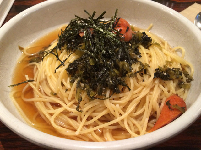 高菜とチョリソーの和風スパ