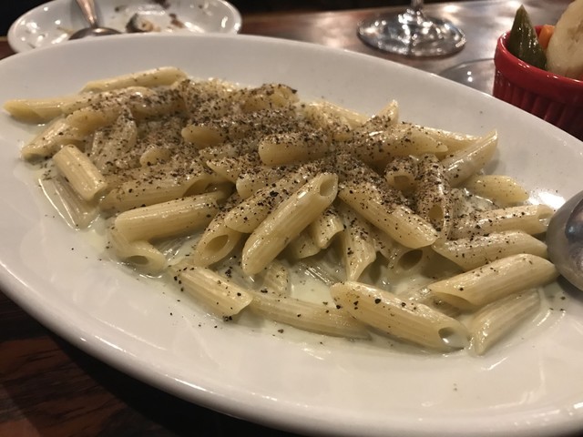 ショートパスタに良く絡むチーズは酸味を抑えたコクの深い味わい。味付けはブラックペッパーのみというポリシーのある一品。
