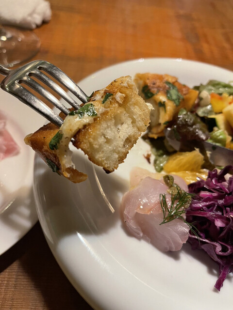 鯛のフリットはサクッとした歯触りにふわっとした食感、そして熱々だ。