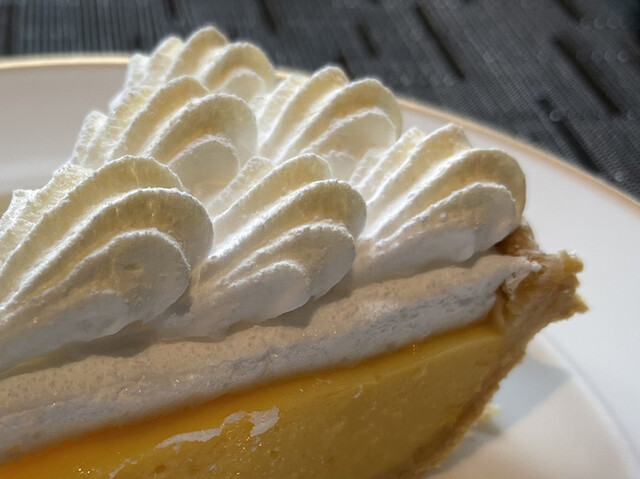 メレンゲのサクッとした食感と上品な甘さ、搾りたてのフレッシュなレモンが香るクリーム、そしてパイに感じる微かな塩味。これらが実に優しく融和する。