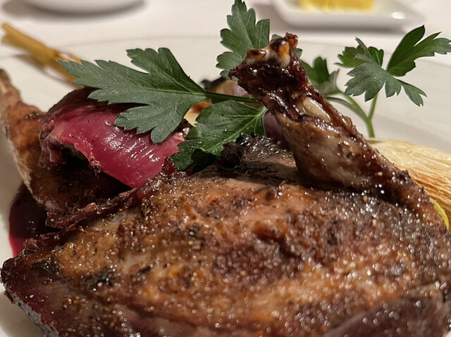 ここで現れた鮮やかな赤身の綺麗さがとても印象的だった。臭みのない鹿のロースは素直な歯応えと弾力。肉の旨味には上品な深さと広がりがある。