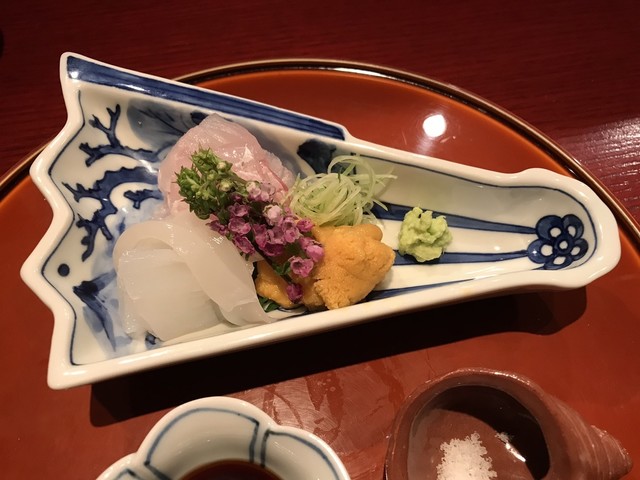 [向付]平目(江戸前)、あおりいか(淡路)、かじき鮪(油津)