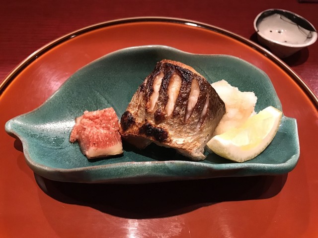 とても綺麗な焼き色。脂の旨味が全体に行き渡り美味し。菊花蕪の爽やかな酸味、丁寧に下ごしらえされた縞笠柚子の甘みがリフレッシュ効果に。