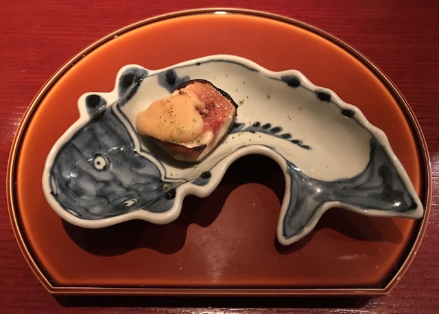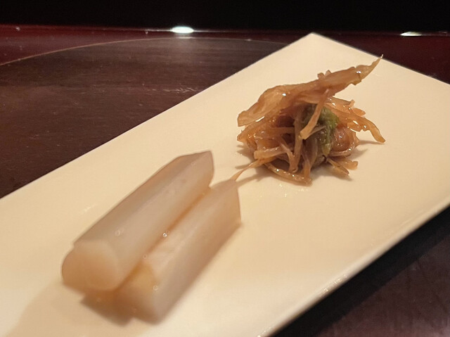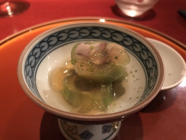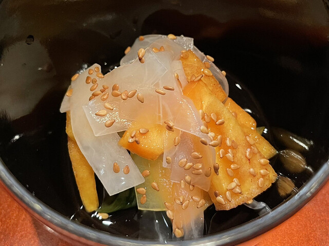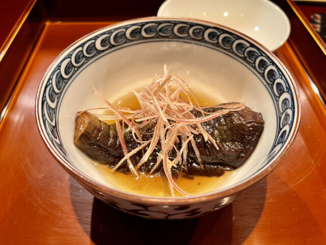 能登の赤なまこの食感に感動。一噛み目はかなりな噛み心地。二回三回と繰り返す毎に歯が通りやすくなり旨味が広がってくる。中毒になりそうな感覚だ。