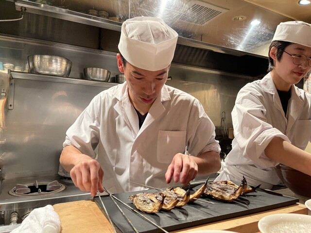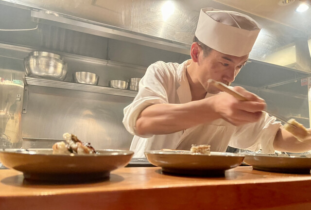 匠の所作を見ながら料理や酒の話、そして世間話を。カウンター越しのこの楽しみこそが おまかせ の極意。