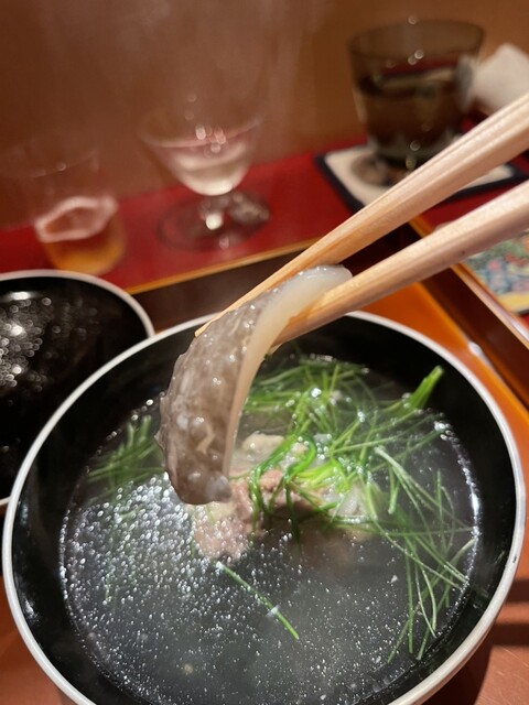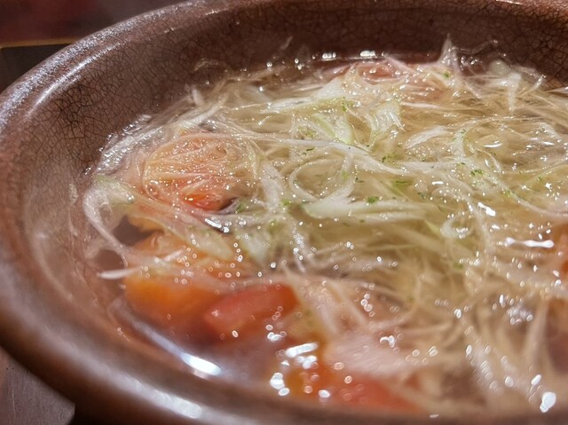 凍えた身体にしみる温かさ。そして、口の中いっぱいに広がる芳醇で新鮮な磯感。このわたの風味は熱を加えても不変なのかと感動。一口一口の合間に感じる爽やかさは酢橘によるもの。