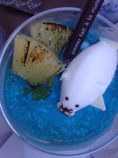 でも、、可愛いだけじゃないのです。シロクマの顔の部分は生クリームでその下のロールケーキが