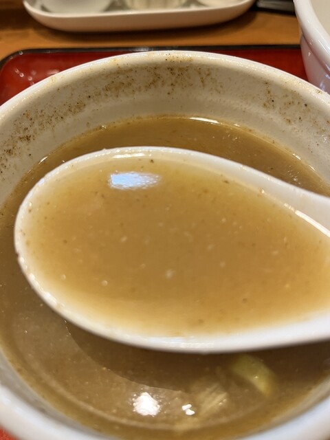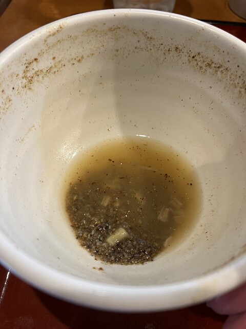 つけダレは強烈な魚介に、甘みと酸味が強めの濃厚な仕上がりとなっており、個人的に、このつけダレは超好み!底には魚粉が大量に沈澱しており、ザラつき感もある以前流行っていたアレですね。