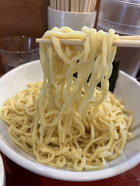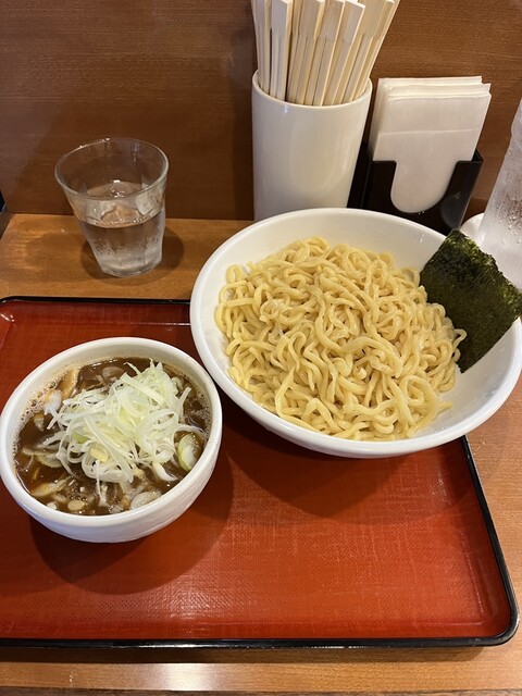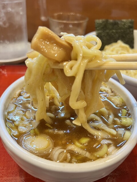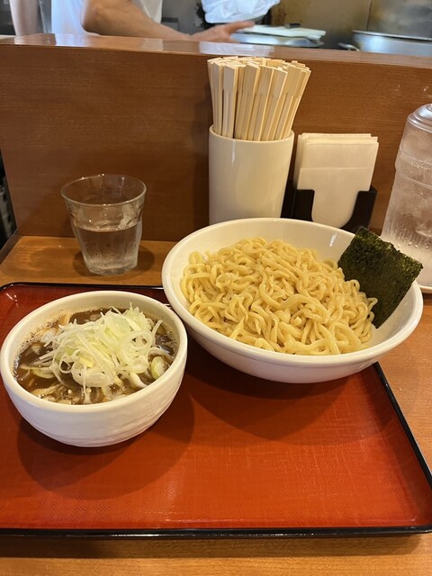 先ず麺1.5玉の量が凄い・・・300g以上あるのでは!つけダレは溢れんばかりの量で麺を浸したらこぼれるほど。