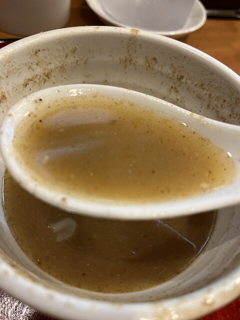 タイミングよく、店主から声をかけていただきました。スープ割りは、一変あっさりした味に変化して